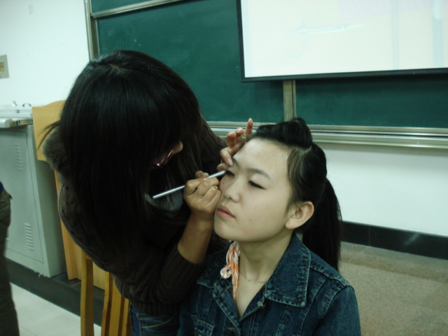 一袭墨黑色的和服,头戴藏蓝色碎花古典折扇,宛若从日本动漫书中走出的人物;高耸的发髻,淡淡的鹅黄加上如天空般蔚蓝的迷人眼影;俏皮的鸭舌帽加上有些桀骜不驯的可爱卷发……当你置身于这样得一群女孩当中时,一定会有一种同春天约会,与美丽赴宴的感觉。不错,这次我院的彩妆大赛就是这样一次与美丽的约会。