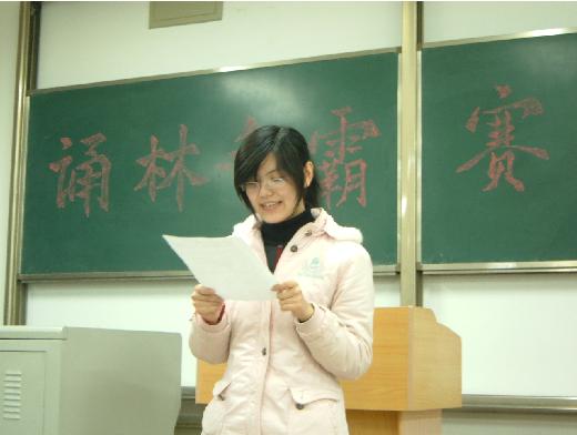 在一首中英文双语诗《走自己的路》中,朗诵题材丰富、形式多样的比赛正式开始。“撑伞走过寂寥的雨巷,徘徊于难以割舍的康桥,面朝大海,春暖花开……”伴着轻柔的背景音乐,选手带我们走进唯美的意境。从《世界上最遥远的距离》中我们体味到最深最真的爱情。一首《温暖2008(节选)》又将我们拉回现实,重温南方雪灾后的感人场景;《因为有你 因为有我》,汶川地震让我们更加团结更加坚强。这充分体现了我校大学生心系天下的爱国情怀。时光荏苒,参赛选手以朱自清的一首《匆匆》提醒我们珍惜时间,把握青春。