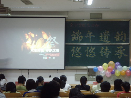 5月25日晚,由天天澡日日澡狠狠澡欧美生活部举行的“端午遗韵,悠悠传承”活动在3217教室圆满举行。活动一开始,由主持人请上并介绍了缝制香囊的同学,当她们在缝制的时候,由云水涧民舞协会的同学献上了优雅的民族舞。随后播放了一段关于端午节的视频,主要介绍了端午的起源、风俗以及影响。之后,根据视频内容进行了提问,同学们的回答也很积极,并且每位回答问题的同学均获得了粽子。在问答环节之后,由民乐协会的同学带来了琵琶独奏。听完动听的琵琶曲之后,一些在5月过生日的同学欢聚一堂,在前面摆放了生日蛋糕,一起庆祝生日并送上来祝福。庆祝生日后,相关人员向大家展示了刚刚缝制好的香囊。最后,本活动在一曲《屋顶》中结束。活动虽短,但我们大家一起迎接端午节是很有意义的。