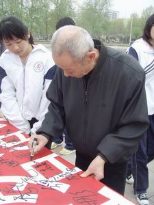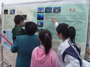 4月11日,距离第十一届全运会还有183天,上午9时会计0705的同学统一着装,早早的抵达章丘市百脉泉广场,阴沉的天气并未影响同学们的热情。记者观察发现,活动所需的音响、展板、桌子以及横幅都已提前运抵,可以看出主办方策划之周密,准备之精心。在同学们紧张而有序的准备工作之后,活动在男女主持人高亢激昂的声音中开始了。首先,会计0705全体同学宣誓,“点燃激情,放飞梦想”,“信念,让我们凝聚在一起;勇气,让我们一路拼搏”,“用汗水谱写2009,用辉煌照亮神州大地”……充满激情的宣誓声回响在偌大的广场中,铿锵有力的语句充分展现了当代大学生的精神风采,也吸引了晨练的市民和来往的行人。紧接着进行的是家乡风采的展示,来自各地的同学以展板为基点,为前来参观的老人,小孩,学生等耐心详细地介绍山东省17个市的风土民情。细致的讲解让并不专业的同学们俨然一个个经验丰富的导游,从名称由来到历史概况,从方言风俗到美食旅游,当然还有必不可少的部分——该市与此次全运会的联系。一位老人听了讲解很是高兴,不禁也发表起自己的看法,跟同学们聊得火热。在交流中,市民们更加了解山东,了解全运,同学们也学到了知识,提高了自己的沟通能力。最后进行的是签名仪式,主办方展开了名为“舞动城市魅力, 挥洒全运风采”的横幅,号召在场所有人在横幅上签字以表示自己对全运会的支持。军人、学生、公司职员、写字时手略有些发抖的老人,就连刚学会写名字的孩子也参与到其中,广场上热闹非凡。