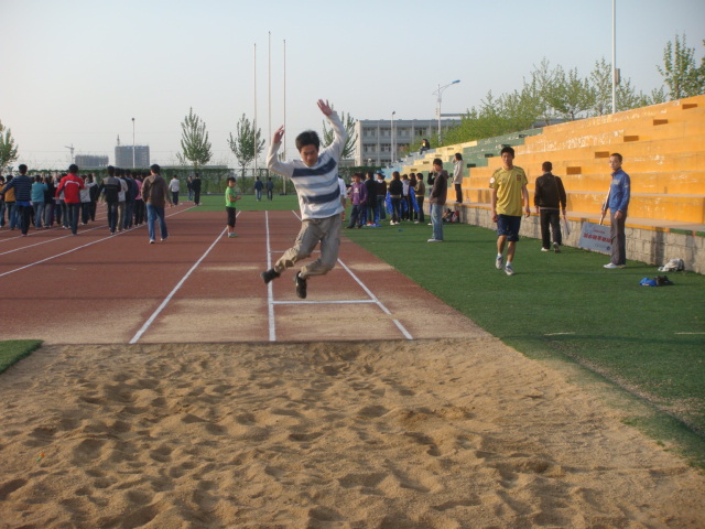 一遍遍地温习起跑动作,努力让自己的动作更加迅速;一次次地琢磨投掷姿势,争取投出更加完美的抛物线,掷的更远。助跑的速度,起跳的力度,所有的一切都只为了两个字:荣誉。当我们还在沉浸在甜美的梦乡,短跑、跳高跳远的运动员已经开始了早上的训练;当我们结束一天的课程回宿舍休息时,中长跑和铅球运动员又进入了傍晚的训练。身体的酸痛与疲惫并不能阻挡他们前进的脚步,他们放弃了自己的休息时间,全力备战运动会,希望在运动场上取得骄人的成绩。他们的认真与执着感动了我们每一个人。