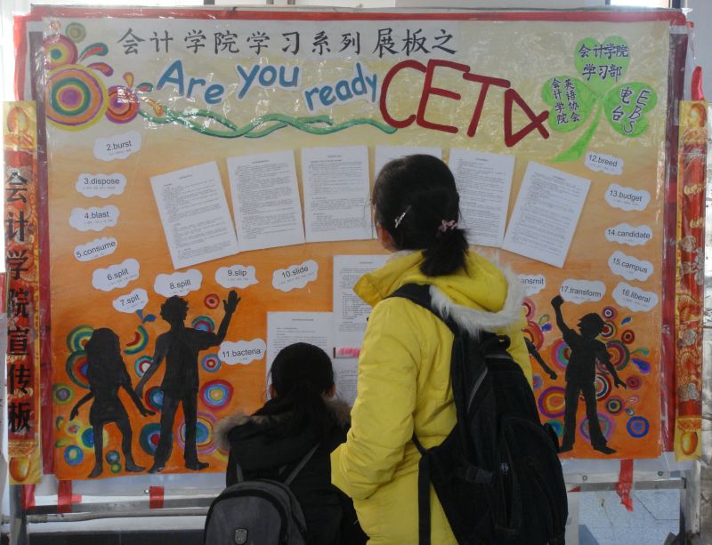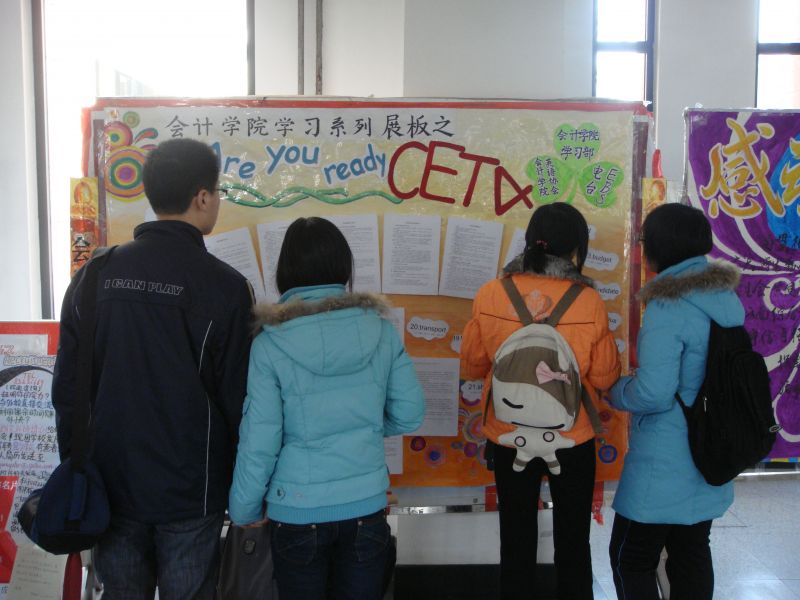 随着四级考试的日益临近,同学们转入了紧张的复习中。本次展板活动为众多考生指点了迷津,很好地帮助考生在最后一个月的时间里冲刺成功,取得自己满意的成绩。