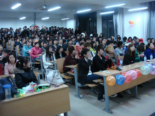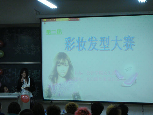 比赛开始前主持人介绍了评分细则,参赛选手要在30分钟内完成参赛作品。比赛开始后,在台下彩妆类选手各展其能,淡抹浓妆总相宜,发型设计类的模特的新发型也在设计师灵巧双手的一疏一剪下初现端倪。与此同时,在台上三位专业发型师分别对三位模特进行发型设计,精湛的手艺引得观众阵阵喝彩。30分钟后,选手们完成了各自的作品。彩妆类和发行设计类选手依次登台,分别介绍了各自的创作灵感和思路。其中,彩妆类的作品多以桃红色为主,迎合了春暖花开的主题,特别是一组参赛作品在服装上独树一帜得采用了民国时期清纯学生装一改时代学生的装束,体现了女生的青春魅力和复古潮流的时尚气息,引来观众的掌声。而发型类的作品也是千姿百态,有温婉大方的,简单干练的,也有甜美可爱的,更有另类的吉普赛风格以及具有民族特色的。最后,所有的模特在动感的音乐中绕场一周,进行了集体展示,观众对自己心仪的作品进行投票,本次初赛的结果将会于两天内以海报的形式公布,敬请同学关注。