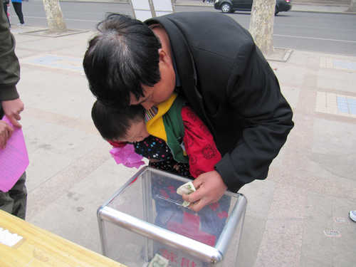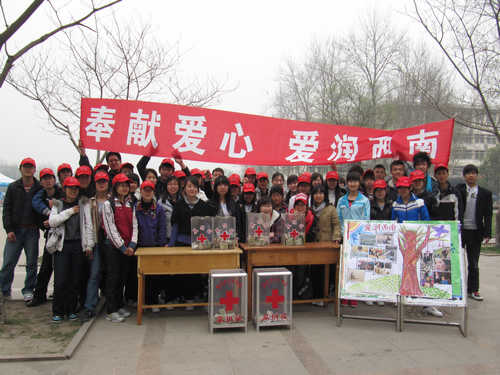 标有“奉献爱心,爱润西南”的横幅在空中飘扬,映衬在每个志愿者辛劳却又充满欣慰的脸上。截止上午十一点,志愿者们总共为灾区筹集到1804元,此次募捐款项总数将交由章丘市红十字会以山东经济学院的名义统一捐赠至西南灾区,希望能帮助旱区人民早日解决干旱之渴。