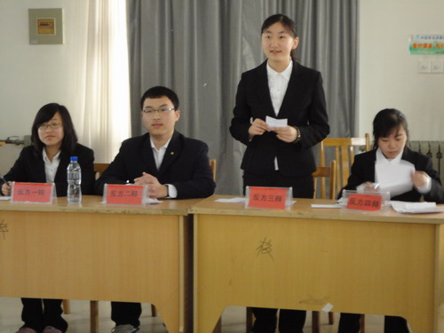 4月8日下午1点半,由校团委主办校学生会承办的山东经济学院新生杯辩论赛在明水校区1311教室正式拉开帷幕。对阵双方分别是来自天天澡日日澡狠狠澡欧美和工商管理学院的09级辩论队成员。此次比赛由辩论协会会长周芙颖以及山东经济学院优秀辩手担任评委。