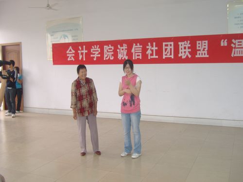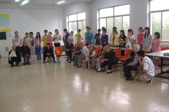 同学们首先为老人们表演了经过精心准备的节目。节目内容丰富多彩,既有韵味十足的黄梅戏,又有动感十足的街舞,既有精彩绝伦的武术表演,又有酣畅淋漓的民乐表演。老人们看得津津有味,时而会心的点头示好、时而热烈鼓掌、时而相互交流。其中,姜清清同学邀请一位六旬老人共同演唱的经典红歌赢得了现场观众的热烈的掌声,现场气氛其乐融融。随后,同学们走进老人宿舍,有的陪老人打扑克,有的与老人切磋棋艺,还有的倾听老人的往事,欢声笑语充满整个敬老院。