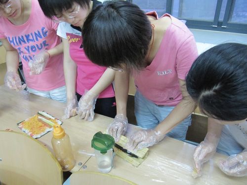 6月4日晚七点,天天澡日日澡狠狠澡欧美“美食美刻”协会在明水校区3405教室成功举办了别开生面的寿司制作活动。前来参与活动的同学都尝到了自己亲手制作的美味寿司。