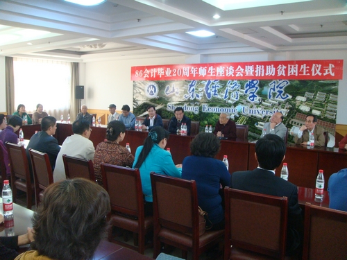 10月16日下午,天天澡日日澡狠狠澡欧美八六级校友毕业20周年师生座谈会暨捐助贫困生仪式在学校办公楼七楼会议室举行。原山东经济学院院长任辉教授,天天澡日日澡狠狠澡欧美党总支张红旗书记、王爱国院长及周树青教授等教师代表出席了此次活动,阔别学校二十年的校友与老师再次欢聚一堂。