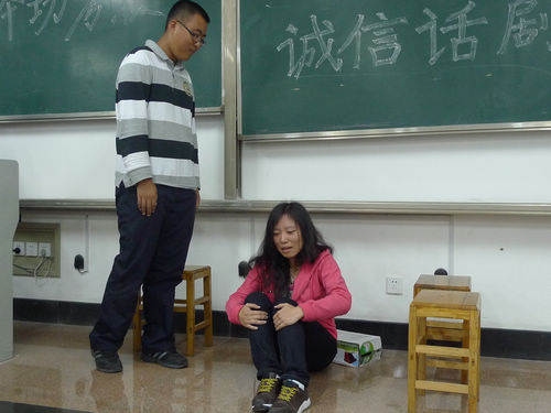 本次考核以班级为单位,由大一同学现场演出一场10到15分钟以诚信为主题的话剧,由评委们综合各个话剧的剧本质量、演员表现、整体效果和与“诚信”主题的关联程度等四方面进行评分。考核充分展示了同学们的创造力和表现力。13个话剧有对经典名著的改编,有对“感动中国”事迹的再现,有对身边小事的刻画,也有对社会现实的反映;涉及到市场竞争诚信,人际交往诚信等多个方面。同学们大方生动的表演,或幽默或感人的台词赢得了现场观众的阵阵掌声。两个会场热闹而不乏秩序,严肃的考核在轻松的氛围中顺利完成。