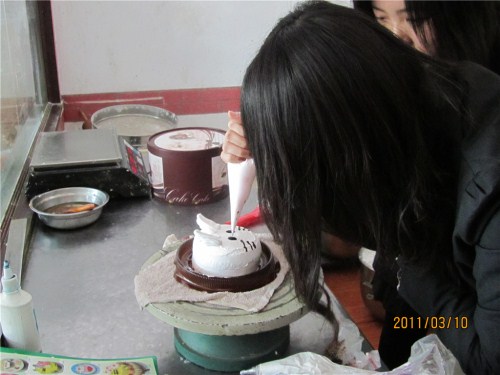 活动宣传之初,“自己动手做蛋糕”的活动方式就吸引了广大会员报名参加。活动正式开始,首先进行的是观摩环节,在观看了蛋糕师制作蛋糕的全过程和认真学习了蛋糕制作的方法、步骤及注意事项后,大家捋起袖子跃跃欲试。虽然是第一次亲手制作蛋糕,但同学们凭借细心的观察迅速找到了制作蛋糕的恰当方法。旋转蛋糕、装饰台刷奶油、添加喜爱的图案,这一系列的动作,真有几分蛋糕师的架势。在刷完奶油后,大家相互交流,奇思广义的设计着自己的蛋糕模型。她们将奶油当做画笔,填涂着蛋糕,绘制着自己的梦想。随后,协会组织者更组织了“涂鸦大比拼”的环节,同学们不甘示弱,纷纷动手用奇异的想象力让一个又一个的蛋糕新鲜出炉。看着自己的杰作,大家均兴奋不已。