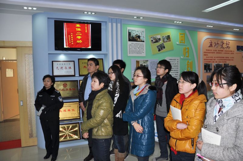 走进监狱森严的大门,大家首先参观了济南监狱的门禁系统、监区、服刑人员的监舍、教学楼和食堂,其中爱心广播站、诚信商店、诚信书屋、爱心桥超市、心理咨询室等专供服刑人员使用的服务设施给大家留下了深刻的印象,真切感受到了济南监狱的规范化、科学化和人性化管理。在警示厅图片展区,学生党员们认真听取了监狱建设的八大联动体系和“一区一校一品”的先进管理理念,并观看了由济南监狱录制的反映服刑人员一日生活状况的《狱中一日》录像片,进一步了解了服刑人员的生活和劳动情况。在监狱管理人员的安排下,党员还现场听取了大学生服刑人员的忏悔报告,他讲述了自己因缺乏正确的人生观,缺少法律意识,因一时冲动而从一名天之骄子沦为阶下囚的过程。在会后讨论阶段,在场的党员同学强烈的感受到增强遵纪守法观念的重要性,纷纷表示要以此为戒,及时自省,不断提高道德修养,树立正确的人生观和价值观。