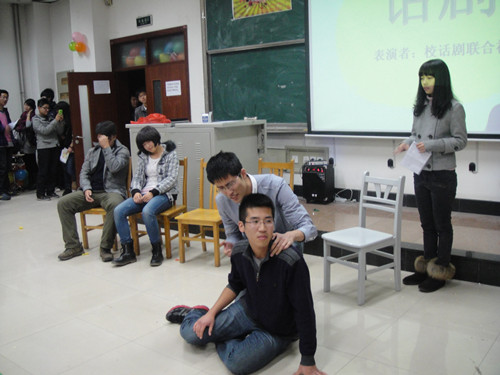 晚上七时,伴着时下最火的《江南style》舞蹈,晚会正式开始。一曲由飞天艺术团带来的歌曲《单身情歌》唱出了无数单身同学的心声,赢得在场观众一片掌声。随后,校话剧社凭借诙谐幽默的对白和逼真的话剧表演为我们上演了一场关于事业与灵魂的较量。在接下来的表演中,魔术揭秘环节揭开了魔术中一个又一个的秘密,而心翔语艺社所带来的诗朗诵《等你》则勾勒出了另一种温馨的画面。此外,穿插在晚会中进行的“谁是卧底”、“苹果蹲”、“非你莫属”等游戏,使得主办方与观众积极互动,现场高潮迭起,不时爆发出阵阵掌声和欢呼声。