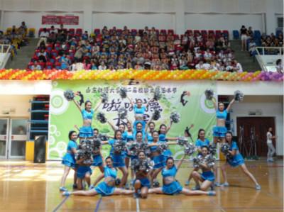 5月15日,山东财经大学第二届校园文化艺术节啦啦操大赛在舜耕体育馆隆重举行,来自各学院的14支啦啦队参加了此次比赛。