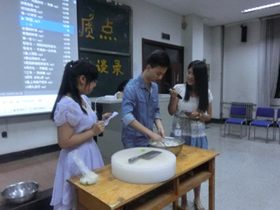 晚六点半,纪录片《舌尖上的中国》选段拉开了此次活动的序幕,本次活动分为“我的美食记录”、“美食背后的故事”、“从饮食窥一座城”及“饮食健康”四个环节。首先,在第一环节中,主持人随机采访现场来自全国各地的同学们,请他们介绍各地各民族难忘的的特色美食。随后,美食美刻社团的两位成员与同学们一起分享了美食带给自己的影响与享受,并现场制作了美味的双皮奶。而后的第二环节中,民族厨艺大赛的冠军与大家分享了“那些年我们一起做过的菜”,唤起了同学们对美食的种种回忆。接下来,进行访谈第三环节,来自青海的大二同学沈亮春向现场的嘉宾与观众展示了自己的拉面绝活,吸引了许多同学纷纷上台学艺。来自济南本地的同学展示了精彩的PPT,向大家呈现济南特色的美食攻略。最后的第四环节中,主持人放出一组关于食品安全的图片,让大家了解现在社会中普遍存在的食品安全问题,在日常生活中同学们应更加注重安全饮食。