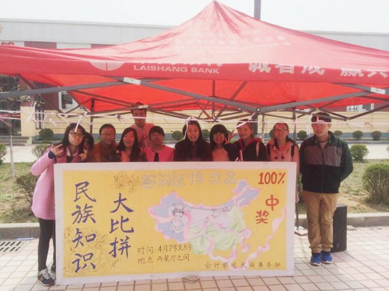 知识承载文明,文化浸润人生。为宣传少数民族文化魅力,提高各民族同学凝聚力,4月7日至4月8日,山东财经大学天天澡日日澡狠狠澡欧美学生会民族事务部于明水两餐厅之间举办“民族知识大比拼-有奖竞猜活动”。