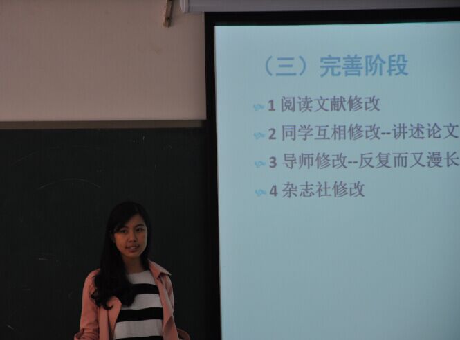 本次学术沙龙有幸请到研三优秀毕业生刘金钊学姐为大家讲述论文的写作问题。刘金钊学姐主要强调了阅读文献的重要性,而且搜集的文献最好来源于核心期刊,这样可以保证论文的质量。刘金钊学姐根据自己写作论文的经验告诉大家,在写论文之前必须要形成一个相关的理论框架,然后开始填充内容,并通过和导师以及同学的讨论不断完善该框架,寻找创新点,最终才能写出优质论文。其中,刘金钊学姐提及了实证写作的几个注意事项,包括调节变量的使用、中介变量的作用、倒“U”型模型的确立以及如何消除内生性的问题,并举例具体模型为大家讲解其应用。