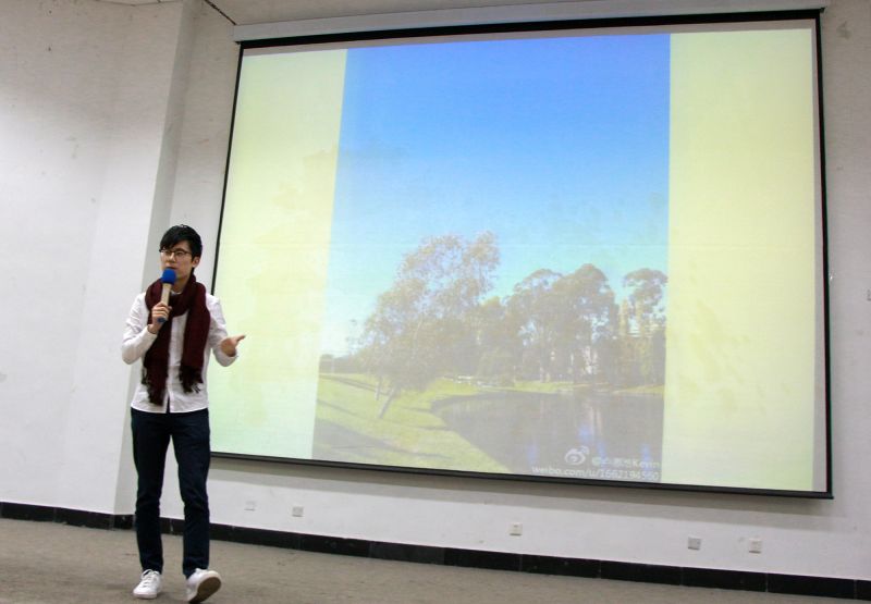 晚上六点五十分,在同学们灼灼的期待目光下,山东音乐广播《城市夜未央》的电台主持人小新幽默的开场白之后,卢思浩着白色衬衫、黑色长裤,戴暗红色围巾亮相会场,现场顿时掌声雷动。一个真诚无邪的鞠躬过后,他围绕偶像、写书、梦想、感情、健康等词,与同学们进行了长达近两个小时的思想交流;他向同学们介绍了在澳大利亚的难忘留学生活,并以一个过来人的身份告诉我们怎样才能遇见更好的自己。