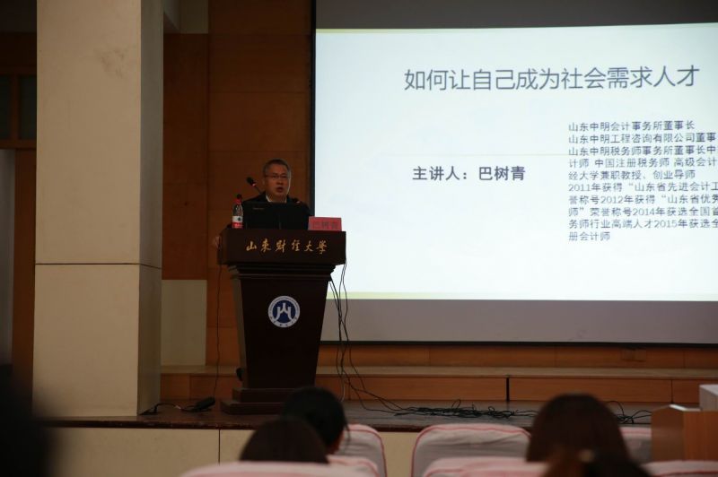巴树青先生首先向大家讲述了自己的职业经历,并从自己及他人的经历出发,就“如何让自己成为社会需求的人才”阐述了当代社会所需人才应同时具有的四条基本素质,即良好的道德品质;强烈的进取心和责任感,良好的敬业精神和工作态度;较高的专业能力和学习潜力;良好的沟通能力和较强的团队精神。随后,巴树青先生又以学长的身份向同学们提出了如下宝贵建议:一是要处理好学习与实践、创业的关系,做好自己的短期规划,把握好大学四年,认真学习,为将来工作做好知识储备。在学习之余适当参加一些社会实践活动,学习一些基本的社交礼仪,以提升自己的综合素质。二是要保持一个阳光的心态,在工作的过程中积极乐观地对待工作、单位、同事和领导,不要让负能量的人影响到自己。三是怀有一颗感恩的心,珍惜那些当面批评自己的人。四是不要急于赚钱,而是要让自己变得值钱。五是不要轻易跳槽。