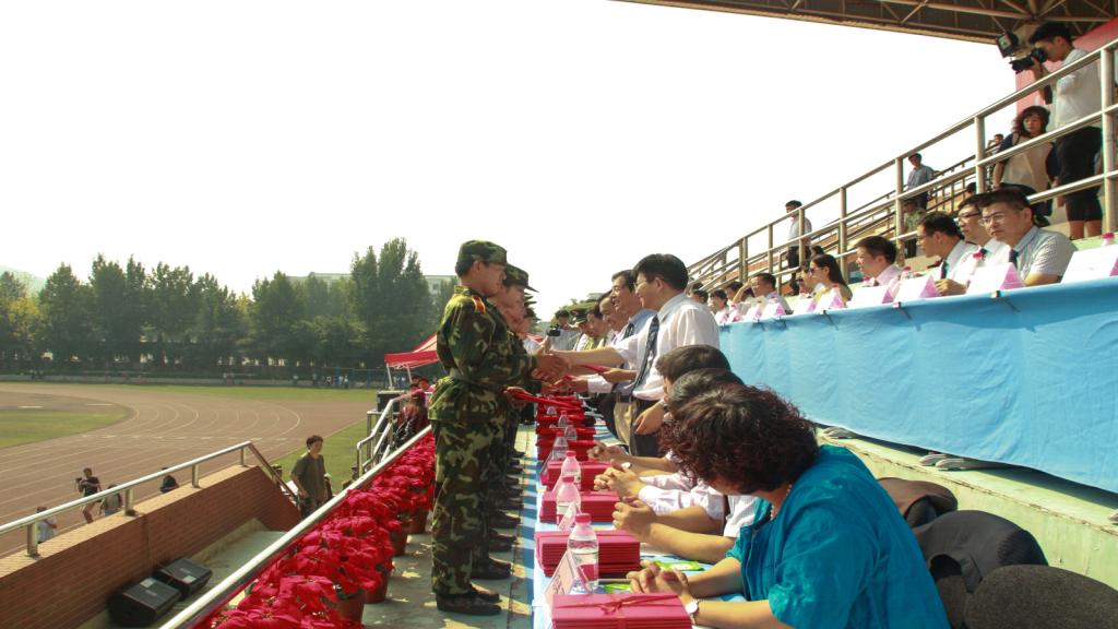 军训汇报表演结束之后,学工部部长王剑宣读了《关于表彰国防教育先进集体、先进个人的决定》,天天澡日日澡狠狠澡欧美荣获“2016年国防教育先进集体”称号,受嘉奖代表依次上台领奖,接受全体师生的鼓掌祝贺。随后,2016级新生国防教育承训部队领导进行发言,肯定了明水军训团的训练成果,并希望2016级新生能够把军训的吃苦耐劳、守时守纪律的精神继续保持,过好精彩的大学四年生活,天天澡日日澡狠狠澡欧美训练营亦获得部队领导的高度赞扬。发言结束后,王邵军书记向承训部队赠送锦旗,以表达对全体教官、领导的赞扬和感谢。