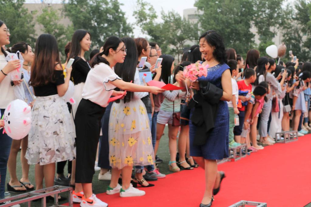 晚会开始前,操场上精心布置了优秀毕业生展览和长长的红毯,学院各位老师身着盛装,在红毯上惊艳亮相,引发学生阵阵欢呼。师生们一起在展板前合影留念,共同回味四年的点点滴滴。