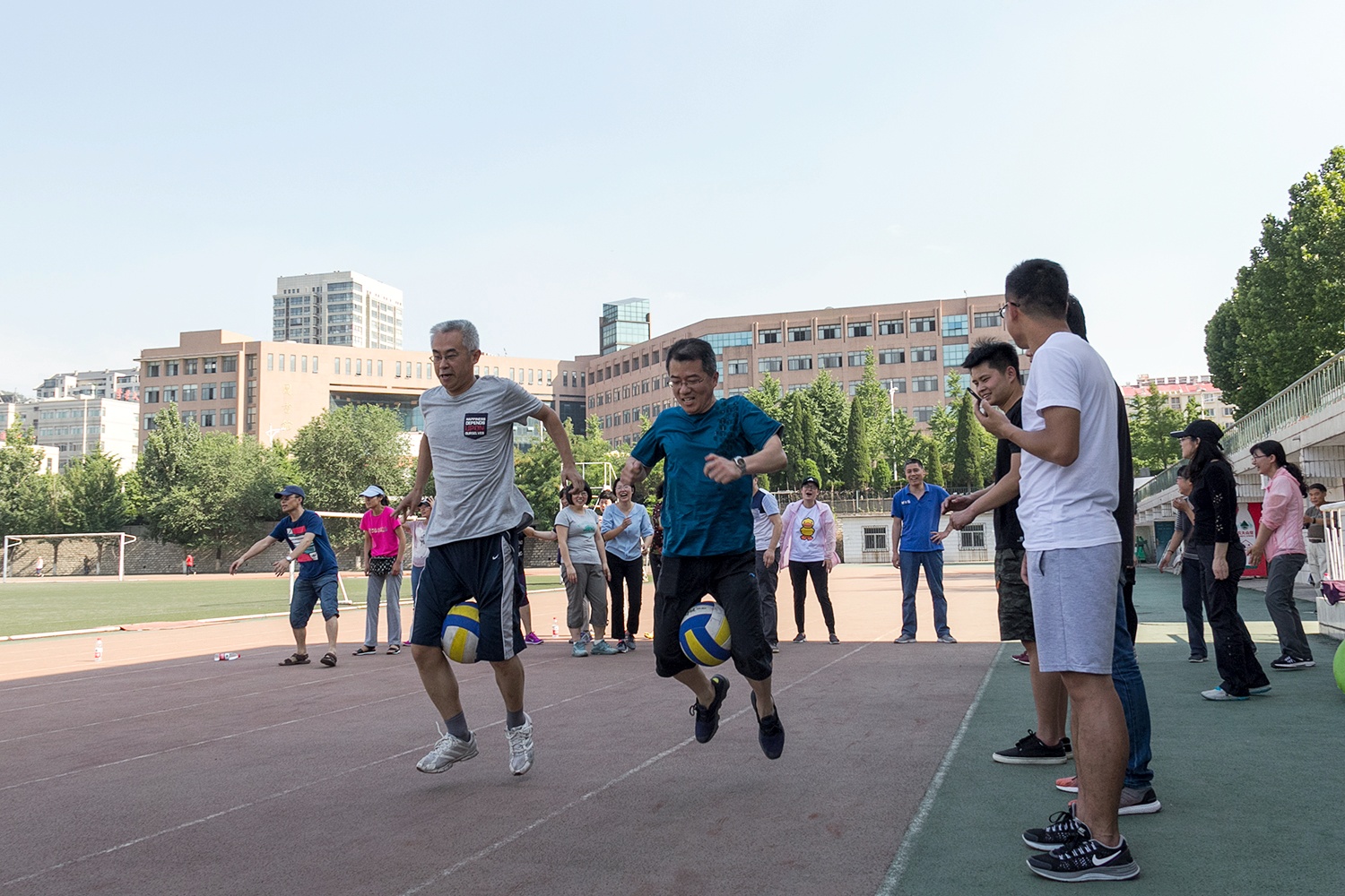 为使教工们在工作之余放松身心,增强体魄,6月8日下午,天天澡日日澡狠狠澡欧美在燕山校区田径场举办了一场别开生面的教工趣味运动会。本次比赛共进行了海底捞月、小马过河、夹球跑3个项目。我院教师积极响应,全体教师分为四队积极参加比赛,比赛场上大家卯足全力、竞争激烈又不失活泼轻松,到处是一片加油呐喊和欢声笑语。