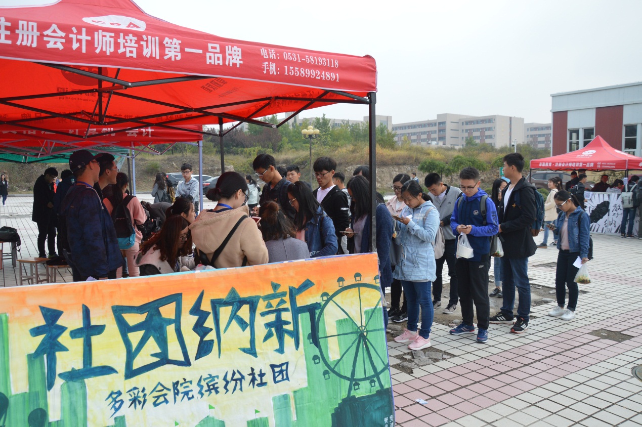 乌云散去,阳光明媚。经过几天的秋雨绵绵,山东财经大学明水校区终于迎来了冷秋里的一抹阳光。10月11日,两餐之间的悦动广场一片热闹的场景,每个人的脸上都洋溢着兴奋与喜悦——大家期待已久的“百团大战”终于华丽丽地登场了!各个院级社团各显神通;小萌新们更是激动不已。想知道现场的状况吗?不要着急,记者马上带你一起去现场探个究竟!