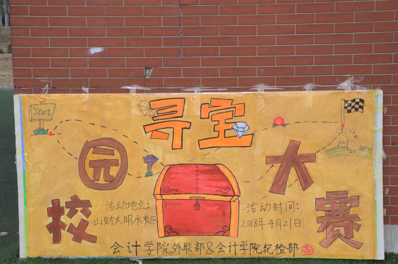 风吹枝头,绿叶摩挲,鸟鸣清脆。四月的风吹尽了生命的干枯,吹尽了心底的严寒,带来了你。为进一步丰富同学们的课余生活,给予同学们一个锻炼脑力和体力的机会,增强同学们之间的交流与沟通,外联部与纪检部特别推出了“校园寻宝大赛”这一紧张刺激的户外活动。经过了为期三天的宣传,同学们积极参与。