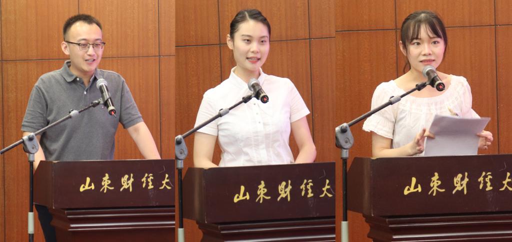 李少臣代表毕业研究生发言。他坦言大学生活并非独行,既有老师同学陪伴的温暖,有生动有趣的课程,有辅导员老师的恳恳开导,也有和朋友们愉快相处的美好时光。他认为,作为山财大的毕业生,更应该坚守职业道德,明确责任与担当,做新时代的奋斗者,衷心祝愿毕业生们不忘初心、前途粲然,祝愿学院越来越好。他对自己山财大七年学习生涯的动情回忆,也引起了现场很多人的共鸣。