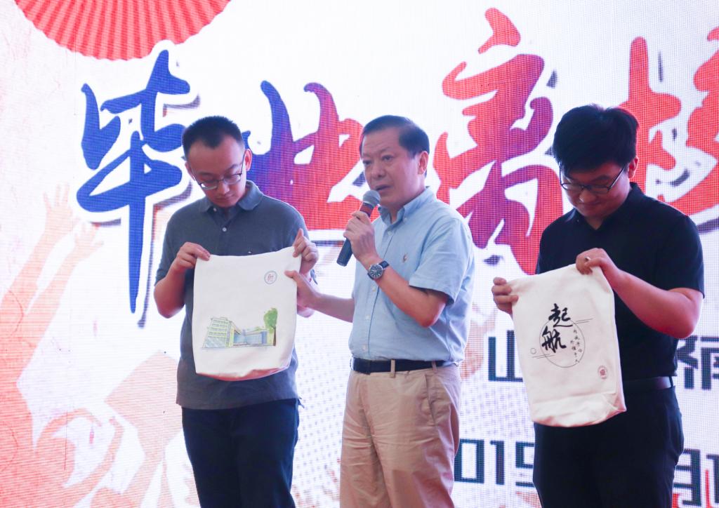 现场进行的毕业纪念品互赠仪式中,王相清代表2019届毕业生揭晓赠送给学院的毕业纪念品并简述其含义。“今天这只鼎,蕴含着我们对学院的祝福,衷心祝福学院在教学、科研、育人等各项工作上更上新台阶,我们以学院为荣,祝愿各位毕业生不畏前方漫漫征途,奋进求索,用变革和创新开拓新征途,不辜负学院和老师对大家的殷切期望。”