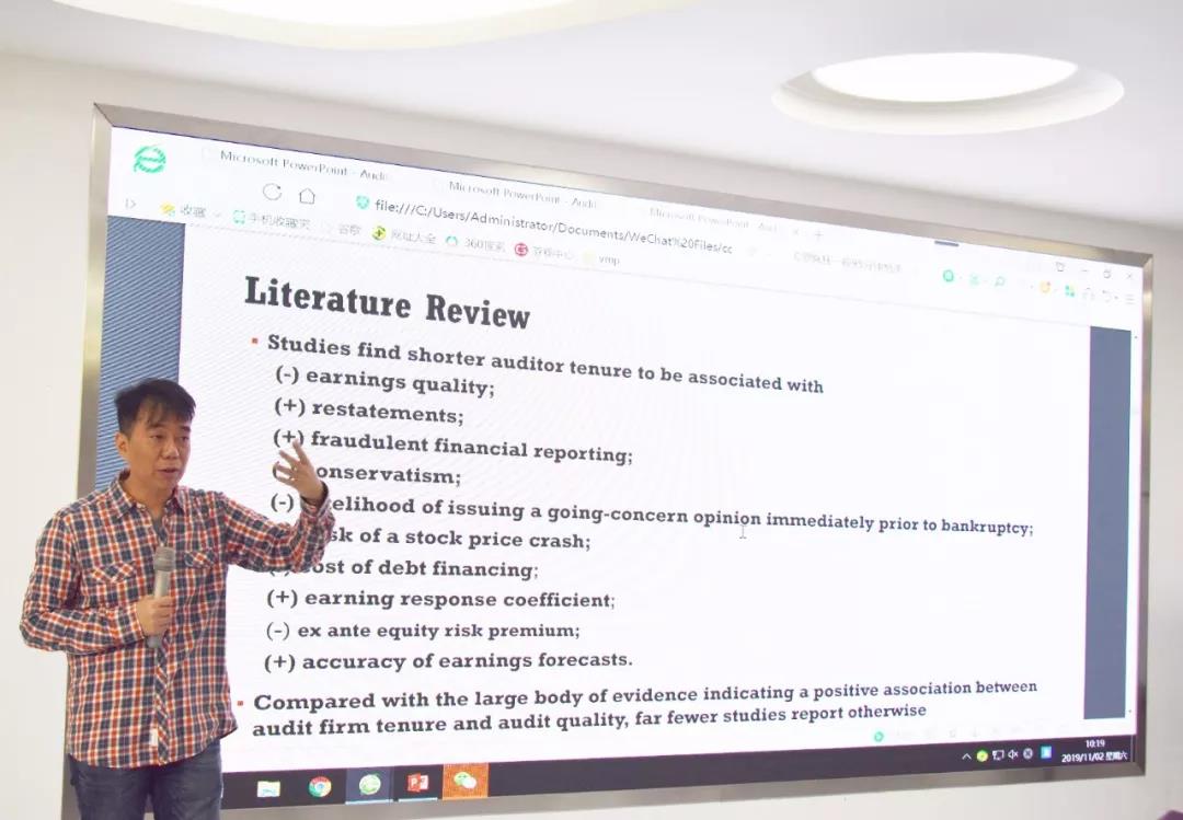 11月2日上午,台湾政治大学戚务君教授应我院邀请,在燕山校区逸夫楼Y320作题为《Auditor Tenure and the Timeliness of Misstatement Discovery: Evidence from Individual Partners》的学术报告。讲座由天天澡日日澡狠狠澡欧美副院长孙文刚主持,天天澡日日澡狠狠澡欧美部分老师以及2019级部分硕士研究生聆听讲座。戚务君教授是台湾政治大学会计系教授,台湾大学商学研究会计组博士,台湾财务报告准则委员会顾问,在财务会计、审计与公司治理领域有很的学术造诣。