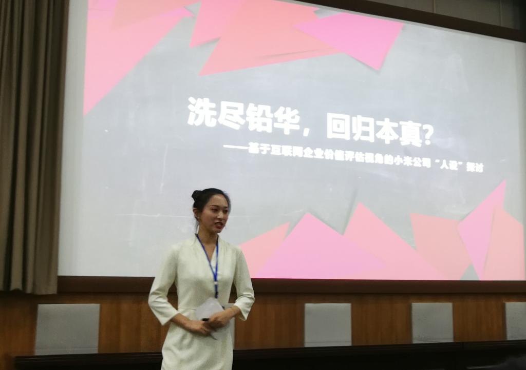 复赛题目是《洗尽铅华、回归本真——基于互联网企业价值评估视角的小米公司“人设”研究》。刘晓颖做案例展示后,全体队员在提问环节的表现也获得了现场专家的高度认可,充分展现了山财大学子扎实的业务能力和良好的精神风貌。