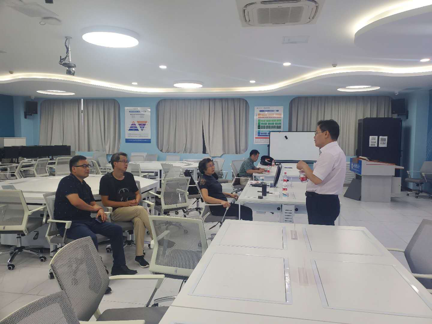 8月31号下午,常州大学副校长王卫星教授和商学院副院长王文华教授访问我院,考察交流我院智能会计专业建设和发展情况。会计学院院长王爱国教授在智能会计实验室与来访客人进行了深入研讨。用友•新道科技助理总裁宋国荣、济南大学商学院博士贾军和会计学院院长助理兼智能会计研究中心执行主任滕晓东博士一起参加活动。