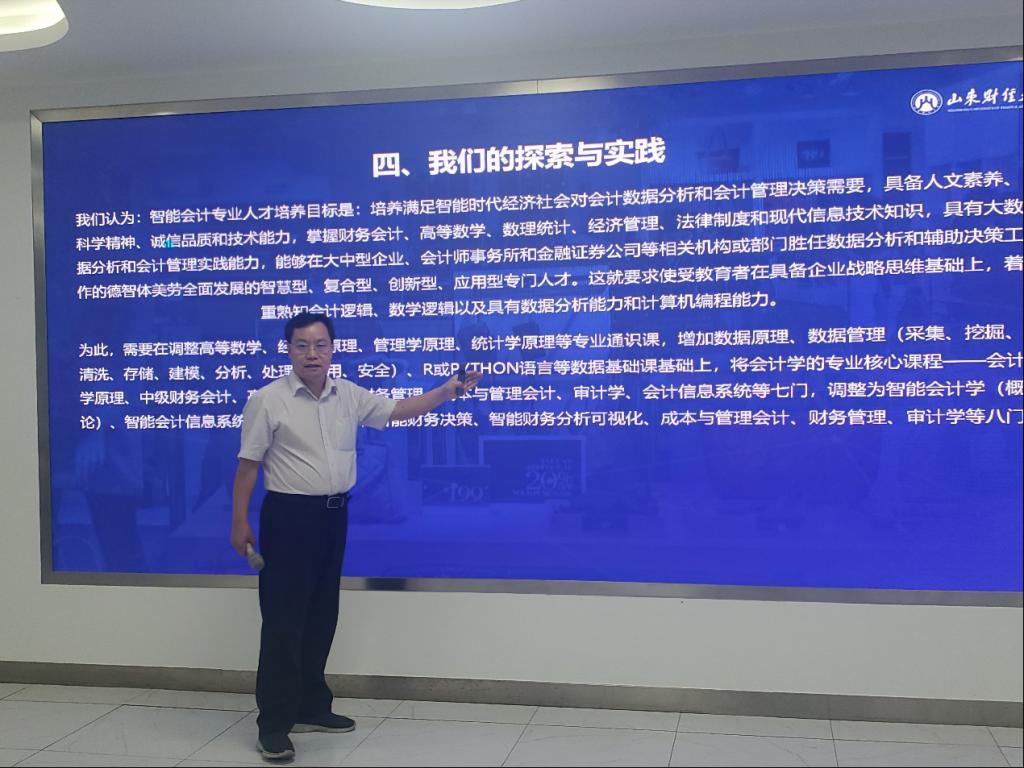 同时,王爱国向客人介绍了自己对智能会计的理解。他认为:智能会计是一种以“数字经济”为前提、“业财融合”为基础、“财务共享”为平台、“人工智能”为支撑,所形成的满足经济管理数据分析和辅助决策信息需要的人机共生、协同进化、管理赋能的会计管理活动。它是会计科学与计算科学、人工智能相互渗透、相互结合的产物,是一门交叉学科,具有计算会计科学属性,是一个至少包括信息形成系统、决策支持系统、管理控制系统、行为调节系统等内容的会计管理生态系统。