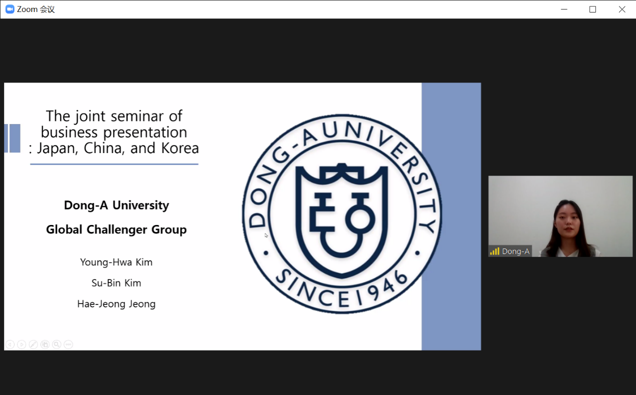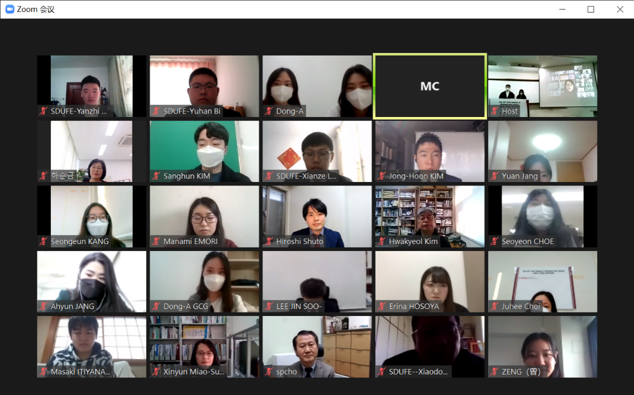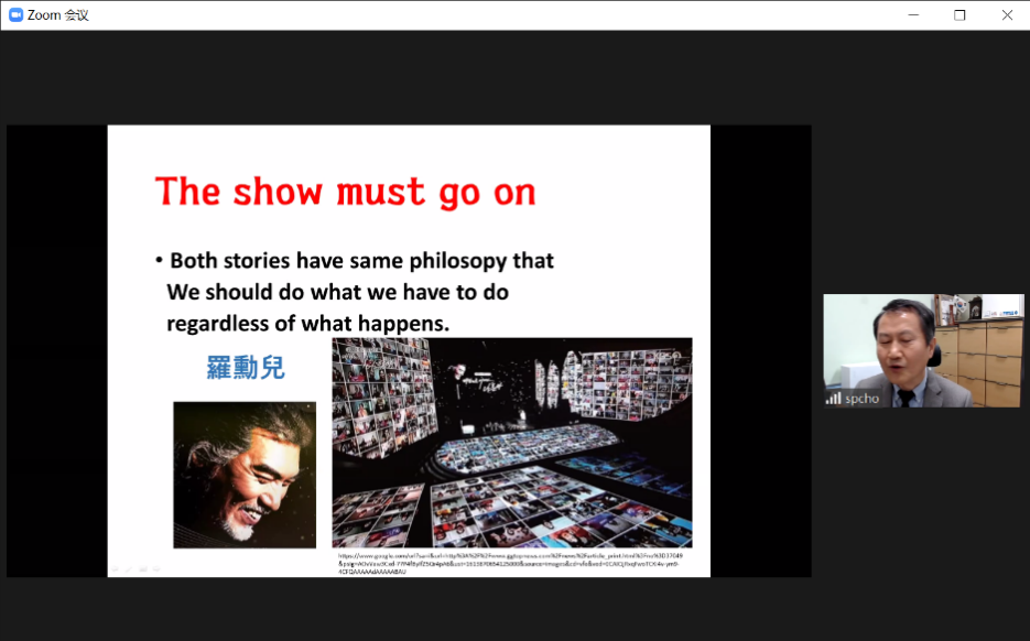 조성표(Seongpyo CHO)首先讲述了两个故事,说明尽管我们受到了新冠疫情的打击,但我们依然要将该做的事情坚持下去“The show must go on”。同时,조성표教授对参加此次会议的高校师生表示欢迎,对首次参加会议的山东财经大学滕晓东教授表示了欢迎与感谢,希望未来能够继续加深合作。