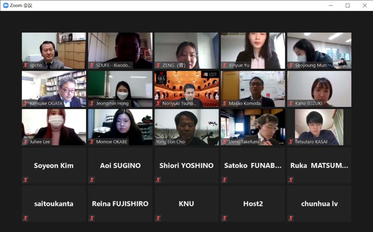 会议由韩国的庆北国立大学主持,开幕式由来自韩国庆北国立大学的조성표(Seongpyo CHO)教授,日本一桥大学的角ヶ谷 典幸(Norityuki TSUNOGAYA)教授,中国山东财经大学的滕晓东教授进行了致辞。