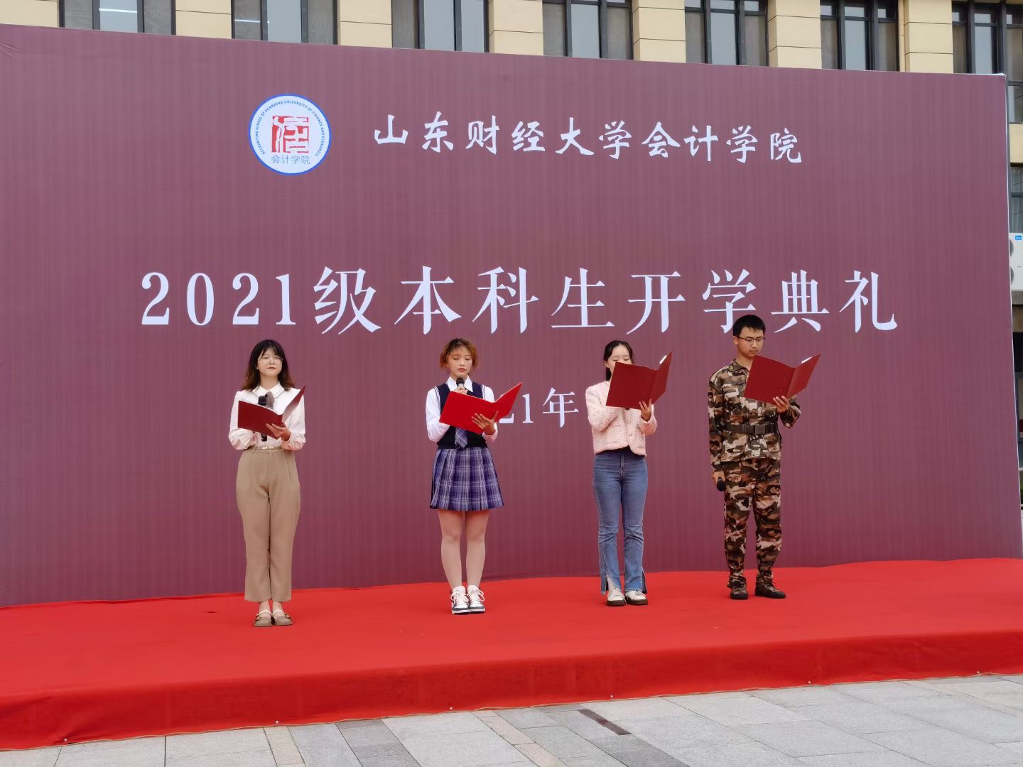 2021级新生代表修扬向全体新生发出倡议,青年学生要有“心系天下”的豪气,树立远大的理想和目标;要有“不学习无以为立”的志气,博学笃志、慎思明辨;要有“请党放心,强国有我”的锐气,挑战极限、勇于实践。希望同学们能铭记建党百年的光辉历程,铸就家国情怀的责任担当,在财大会院的每一天,以青春之我,奋斗之我,致敬建党百年,赓续会院华章。