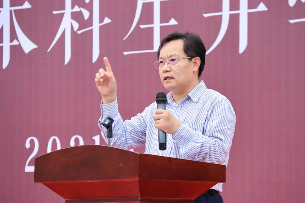 王爱国在典礼最后发表了亲切讲话,他与新生们一起回顾了天天澡日日澡狠狠澡欧美与山财大同辉煌的七十年历程,现有成绩的取得离不开每一位校友、老师与同学们的付出与努力,而新同学的到来又为学校和学院注入新的生机与活力。王院长指出,新时代会院学子要接稳历史的接力棒,肩负历史使命,坚定自信自强,努力成为堪当民族复兴重任的时代新人。他还与同学们分享了自己的求学经历,生动讲述了该如何规划大学四年的生活、如何规划人生的发展道路。最后,王院长勉励新生们当以精神之光照亮前行之路,在山财大收获健康的体魄、扎实的学业、深厚的友谊和优秀的品格,书写绚丽的青春华章。