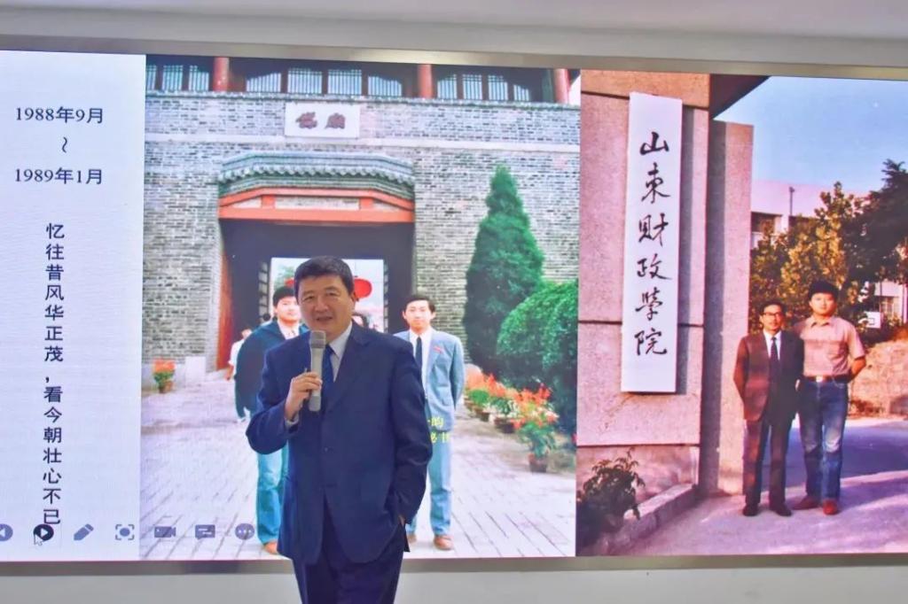 孙铮首先表达了再次来到山东财经大学的喜悦,赞叹山财的变化之大,这个变化不仅仅是规模,更是在教书育人、学术研究、社会服务方面做出的卓越的成绩。随后讲述了在1988年代表上海财经大学会计学系派出的青年教师支援山东财政学院会计系的经历,回忆了当时师生为创办省里最好的财经大学,共同朝这个方向努力的历程。最后,表达了对山东财经大学的美好期待。他期待,将来山财不仅仅是纯粹财经院校的概念,而是朝着一个具有财经特色同时又能海纳百川的微型社会科学类综合性大学的方向发展。