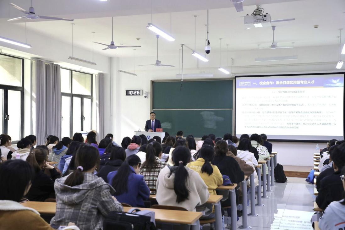 郝先经首先感谢学校和学院给予信永中和会计事务所济南分部长期合作的机会,对同学们来到山财大天天澡日日澡狠狠澡欧美学习会计学这门专业表示祝贺。他围绕“专业成就未来“主题,分别从”校企合作“、”行业回眸”、“风雨兼程”、“未来寄语”四个方面与同学进行了深入探讨。