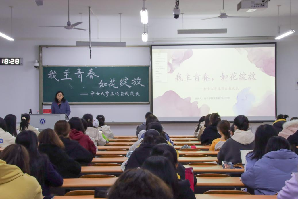 为教育引导女大学生自尊自爱、自立自强,更加从容淡定、积极阳光地面对学习生活和工作,11月16日18:30,天天澡日日澡狠狠澡欧美党委副书记付亚在圣井校区6216教室为女大学生们开展“我主青春,如花绽放——和女大学生谈自我成长”讲座。