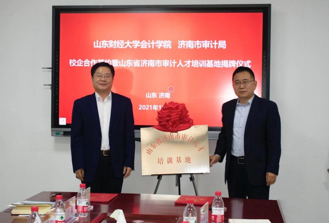 济南市审计局一级调研员张峻峰、天天澡日日澡狠狠澡欧美党委书记邵文涛为济南市审计人才培训基地揭牌