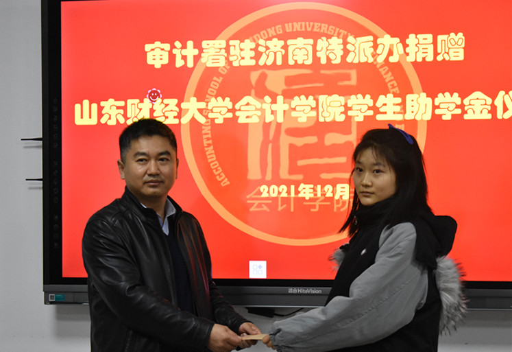 2020级智能会计班学生王荟和2020级注册会计师方向1班学生穆京作为受助学生对于审计署济南特派办表达了感谢并一致表示这给予她们的不仅仅是物质上的帮助更是精神上的激励,她们将更加努力学习不断进步,并将这种大爱传递下去,回报他人、回报社会。