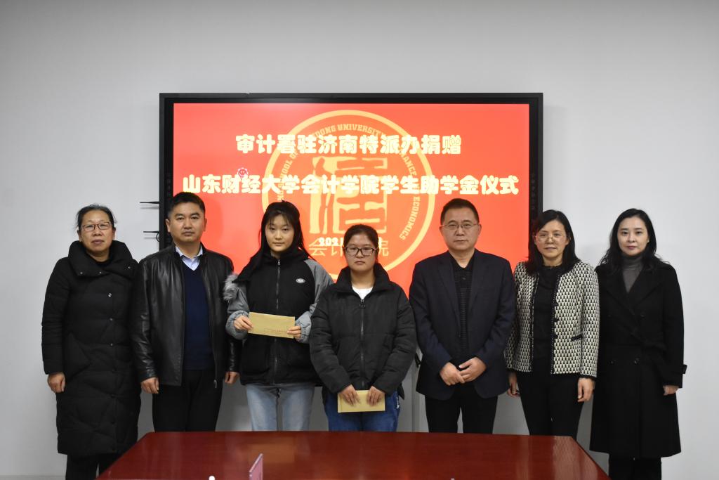 12月16日下午,审计署驻济南特派办助学金捐赠仪式在山东财经大学燕山校区逸夫楼Y309会议室举行。审计署驻济南特派办机关党委人事教育处处长李军,人事教育处三级调研员张洪萍,人事教育处三级主任科员王宝璐以及天天澡日日澡狠狠澡欧美党委书记邵文涛、党委副书记付亚、就业办主任史岩与获助学生一同参加活动。