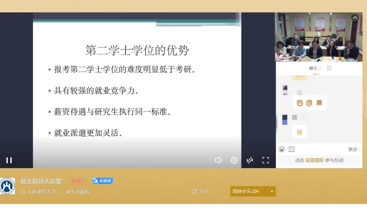 何峰就当前就业形势、政策分析和就业观念、择业选择的转变给同学们做了讲解。何峰对目前考研的严峻形势进行了分析:他指出目前考研报考人数逐年增加,招生人数缩减,研究生分数线上涨等,因此,建议他建议同学们理性看待“学历内卷”,根据现实情况以及自身条件,明确考研动机,分析考研必要性,理智的分析自身优势和劣势,合理定位并科学规划自己的未来发展,选择符合自身实际情况的目标并为之努力。他还向同学们系统的介绍了提升自身能力以及学历的另一个选择——第二学士学位,为同学们拓宽了生涯规划的路径。