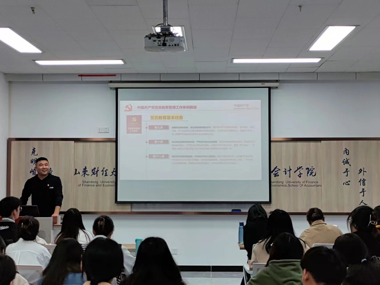钟毓卓根据《中共山东财经大学委员会关于进一步提高发展党员质量的意见》,以入党流程为中心,逐步详细地阐述了中国共产党发展党员的五个阶段二十五个步骤以及具体做法,并讲解了入党积极分子的确定和培养,发展对象的确定和考察,预备党员的接收、培养教育、考察和转正以及对发展党员工作过程中的注意事项等内容。她指出,要提高对发展党员工作严肃性、重要性的认识,把政治标准放在发展党员首位,规范落实发展党员工作的具体要求,不断提升发展党员工作的质量和水平。