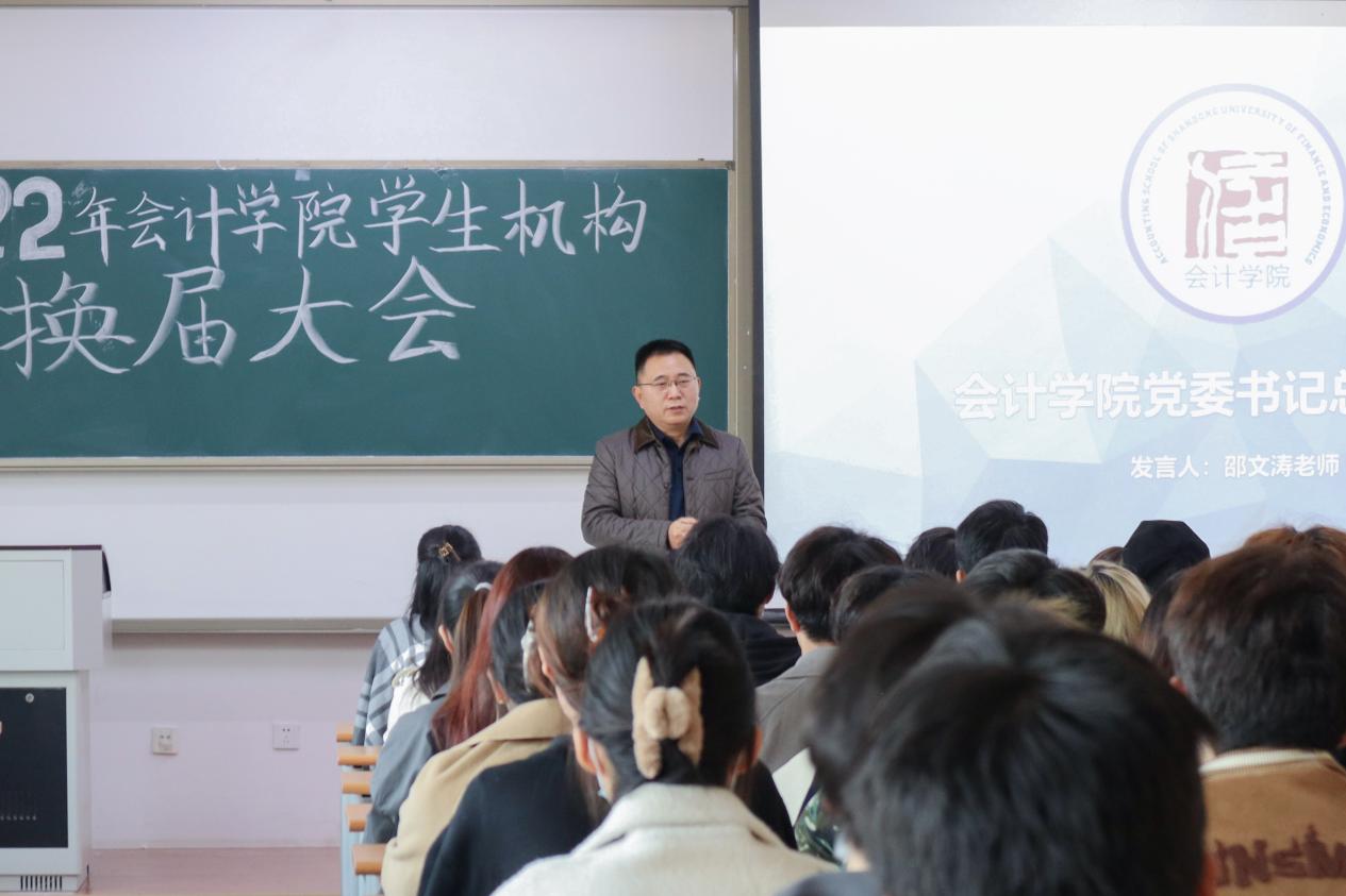 在本次大会上,邵文涛对新一届学生会提出了几点要求:首先,加强政治学习,尤其是学生会成员加强对党的二十大的学习;其次,希望学生会成员以身作则,坚定政治理想,成为优秀的带领者;然后,要求学生会掌握正确的工作方法,加强团队建设;最后,要提升个人素质,加强作风建设,培养服务意识和独立思考的能力。希望学生会能够本着从同学中来,到同学中去的的原则,以饱满的热情积极开展工作,更好地为同学们服务。