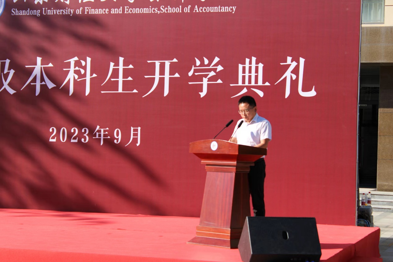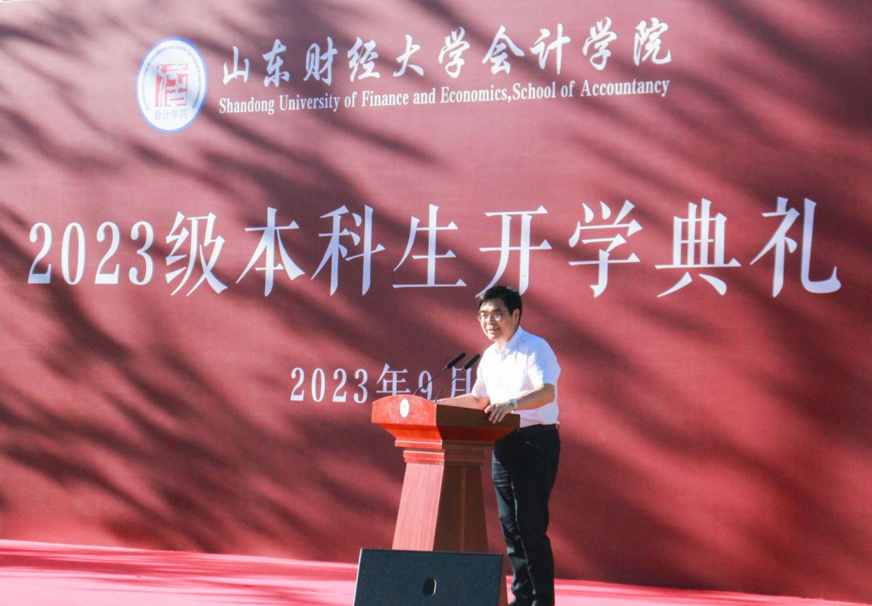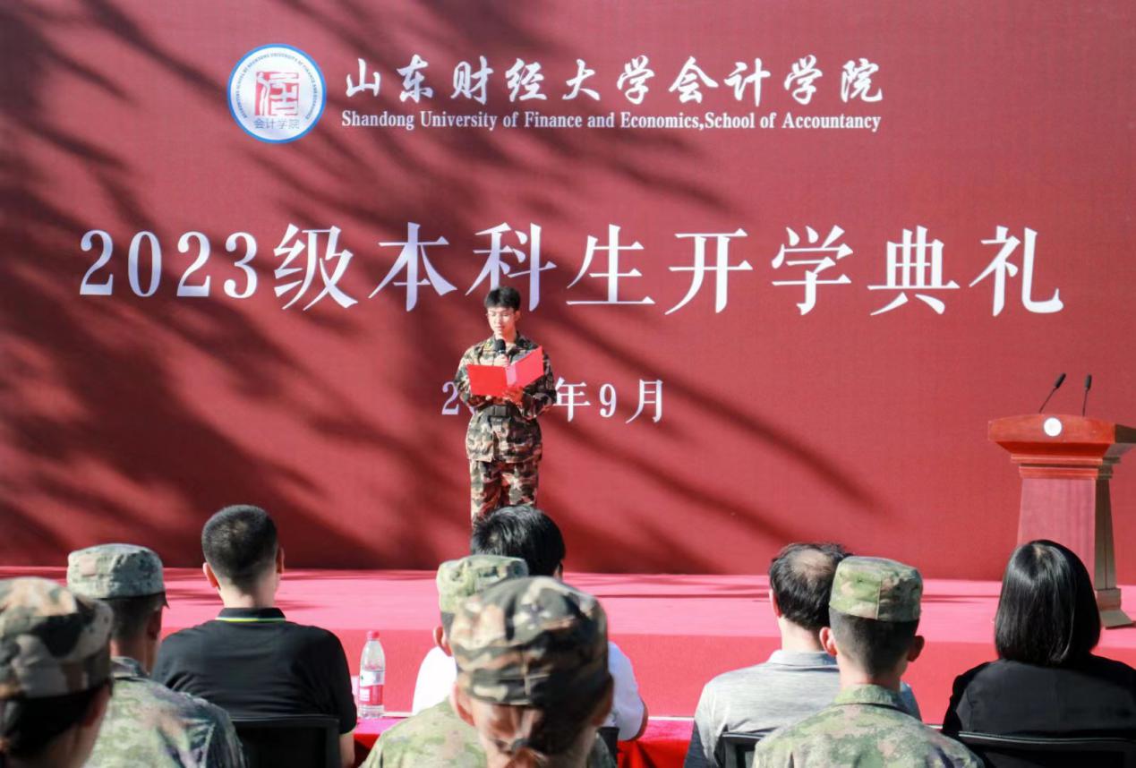9月21日下午,天天澡日日澡狠狠澡欧美在圣井校区召开2023级本科生开学典礼。99级校友浪潮集团财务有限公司总经理王冰,天天澡日日澡狠狠澡欧美党委书记邵文涛,院长葛永波,副书记郑大伟,副院长王守海、吴大新、刘惠萍,审计系教师国赟,学院党委委员兼学工办主任赵鸿雁,团委书记张慧娟,党委组织员张沫,就业办主任孙菁,辅导员王文伟、曹婧,以及山东财经大学军训团一营的各位教官出席典礼。典礼由学院党委副书记钟毓卓主持。