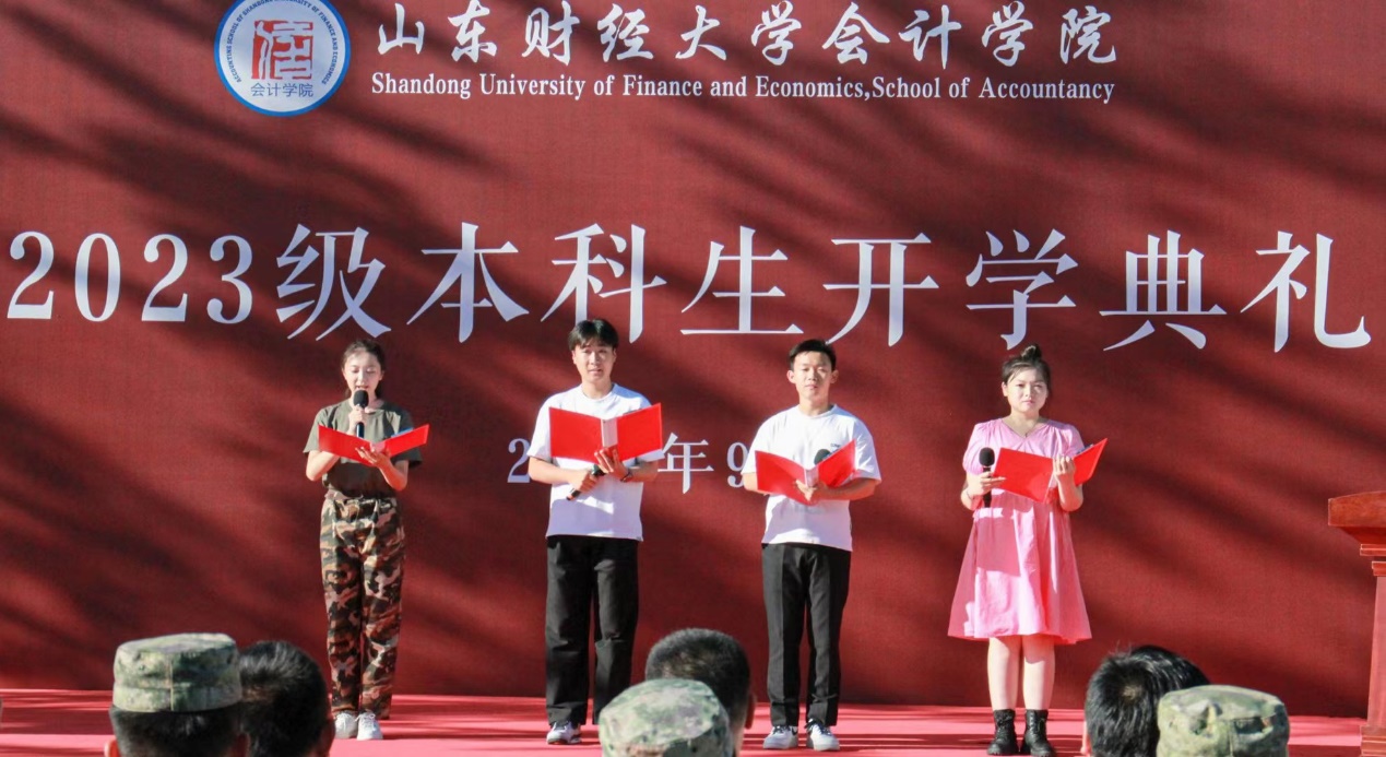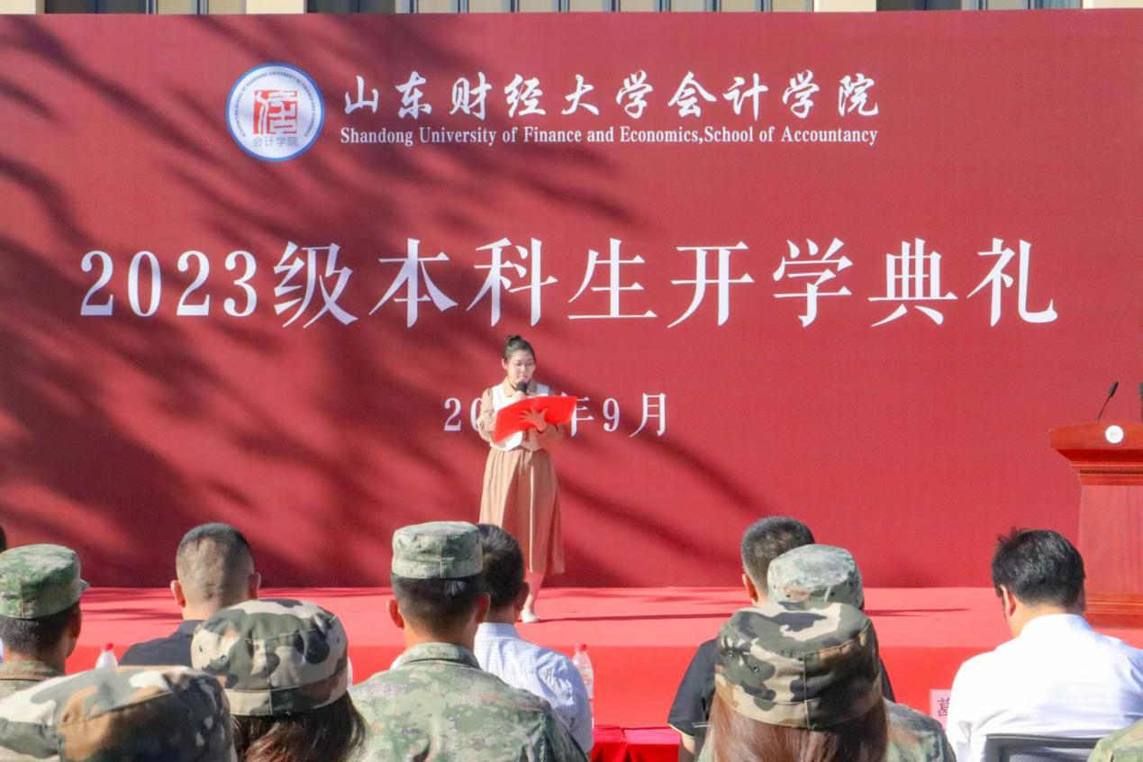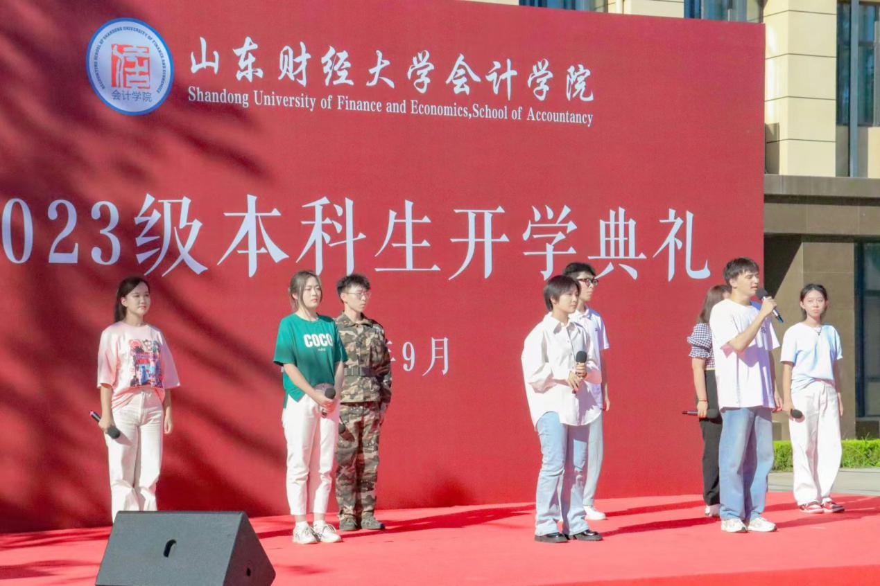 9月21日下午,天天澡日日澡狠狠澡欧美在圣井校区召开2023级本科生开学典礼。99级校友浪潮集团财务有限公司总经理王冰,天天澡日日澡狠狠澡欧美党委书记邵文涛,院长葛永波,副书记郑大伟,副院长王守海、吴大新、刘惠萍,审计系教师国赟,学院党委委员兼学工办主任赵鸿雁,团委书记张慧娟,党委组织员张沫,就业办主任孙菁,辅导员王文伟、曹婧,以及山东财经大学军训团一营的各位教官出席典礼。典礼由学院党委副书记钟毓卓主持。