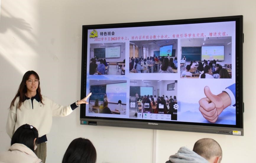 各班参会团支书陈述了支部基本情况和工作开展情况,展示了本团支部在思想政治引领、团务团建、网上共青团、特色工作等方面的工作成果。随后,评委针对陈述内容进行提问,相应团支书进行答辩。答辩结束后,评议小组老师进行讨论确定推荐名单。