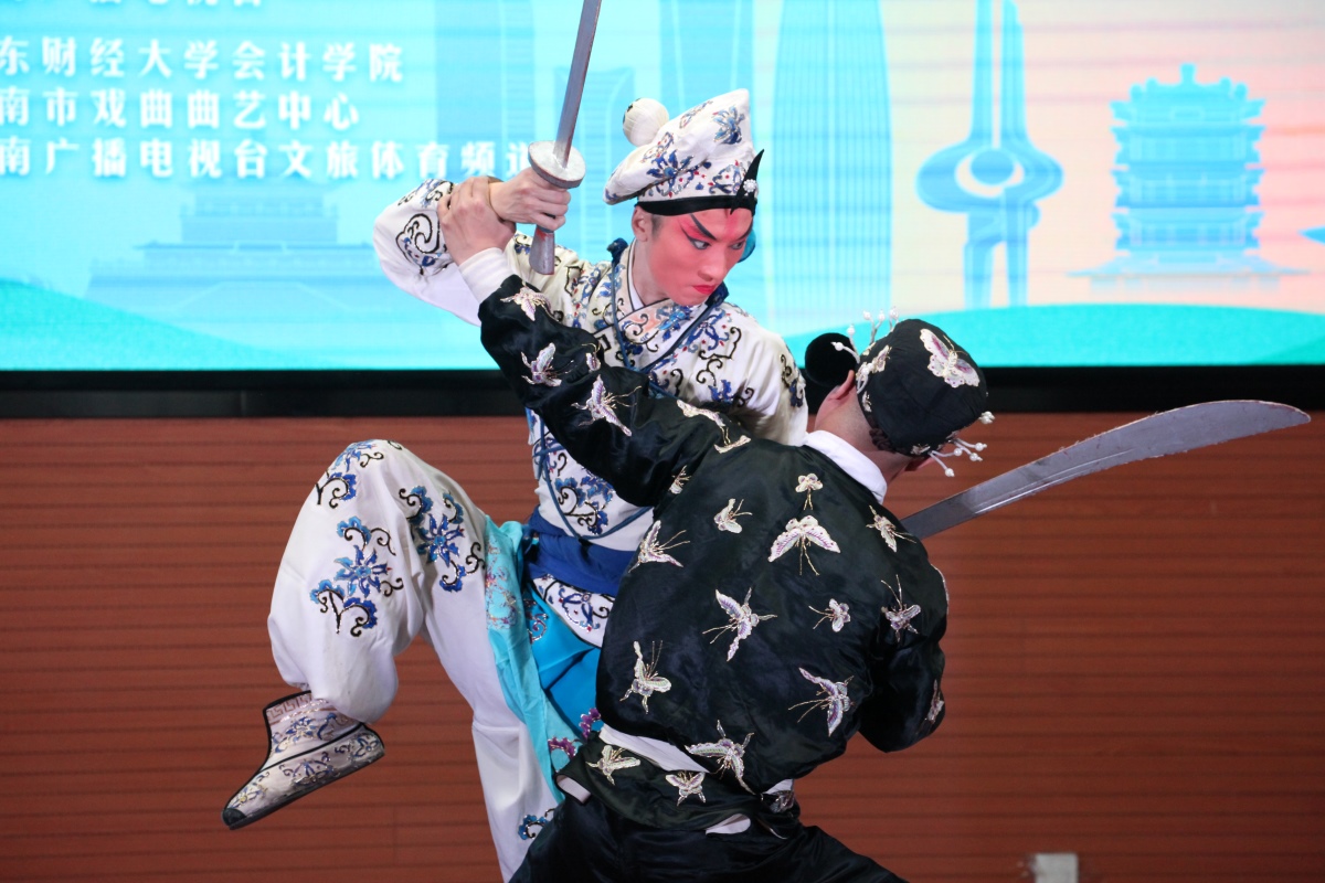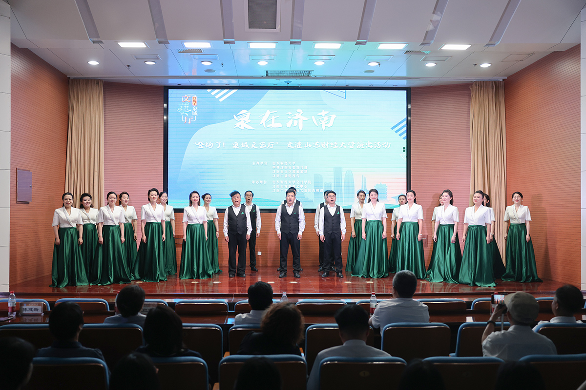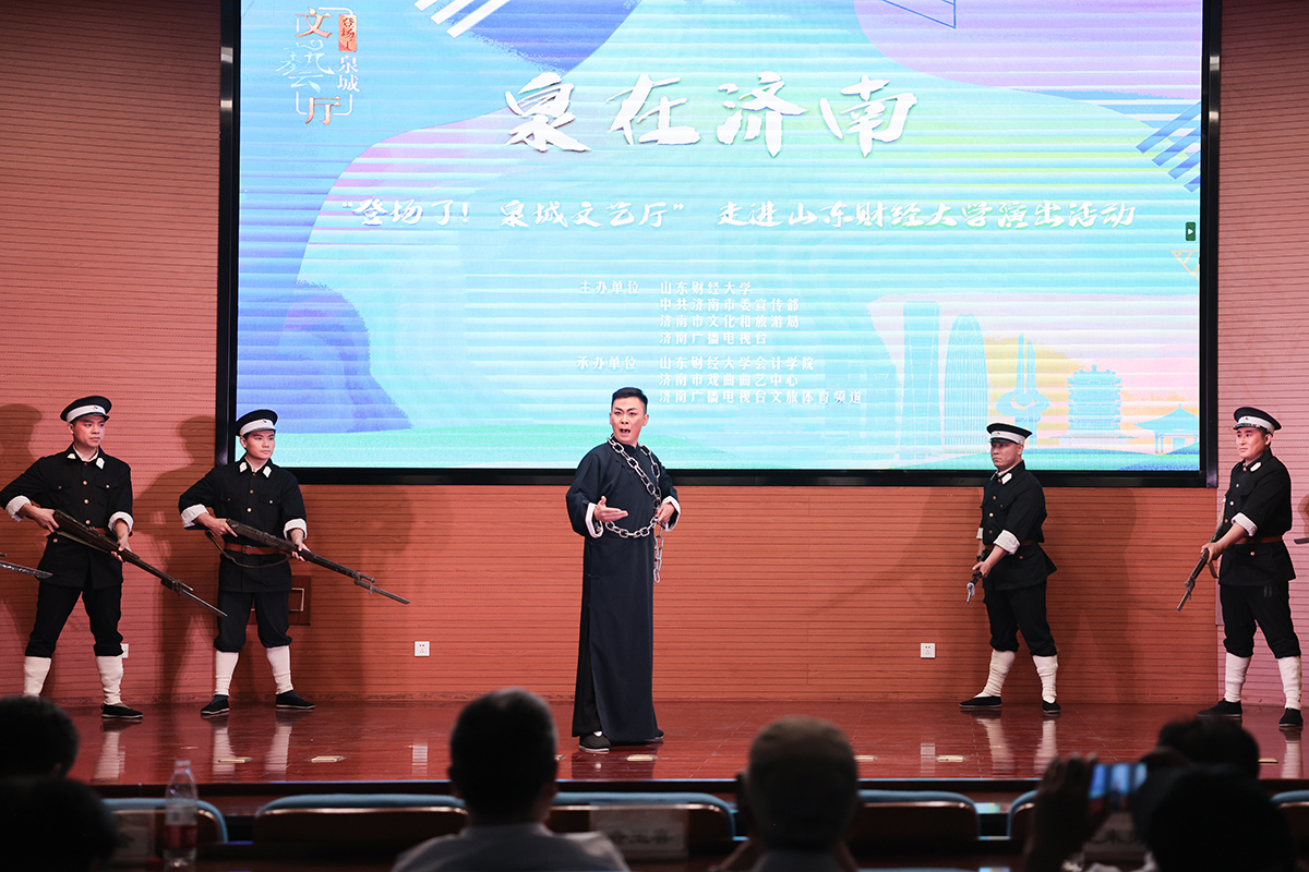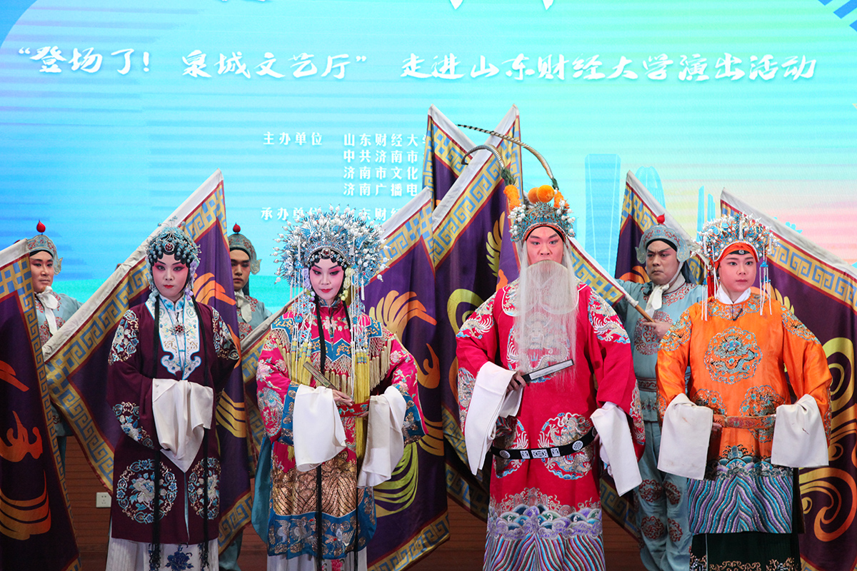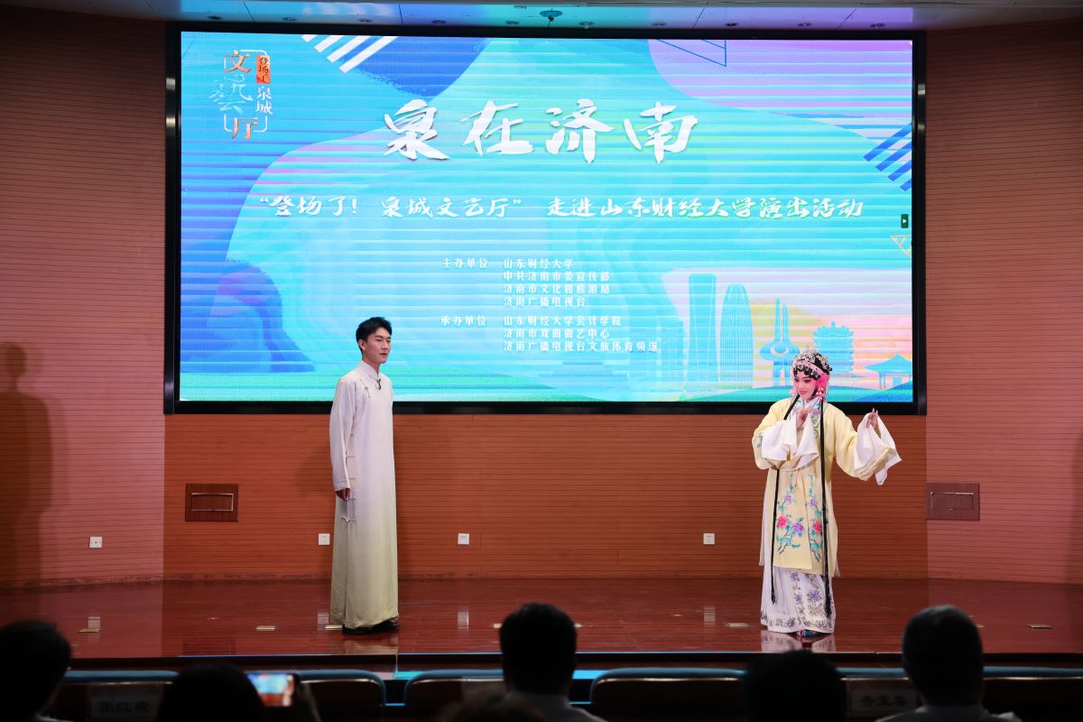 菁菁校园六月相约,高雅艺术精彩纷呈。6月7日下午,由山东财经大学、中共济南市委宣传部、济南市文化和旅游局、济南广播电视台主办,我校天天澡日日澡狠狠澡欧美、济南市戏曲曲艺中心、济南广播电视台文旅体育频道承办的 “‘泉’在济南——登场了!泉城文艺厅”走进我校,在燕山校区图书馆第一报告厅举办专场演出,让师生们近距离领略了高雅艺术的无穷魅力。现场高潮迭起,精彩纷呈,震撼心灵。